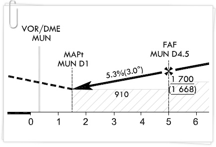 따라서 위 차트의 VDP는 무안 VOR(MUN) DME 기준으로 2.4DME로 정할 수 있다.