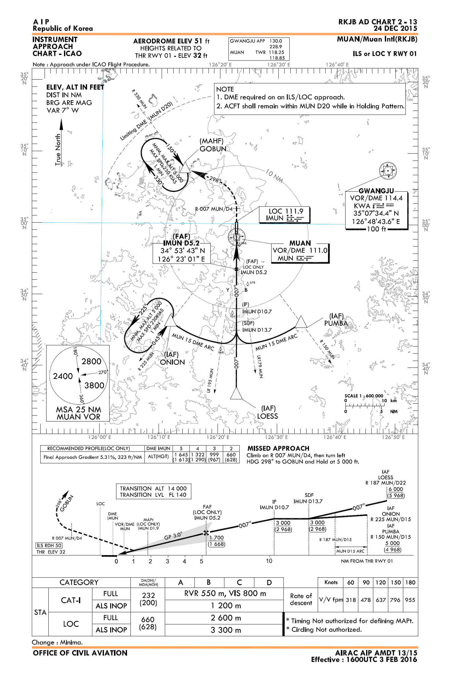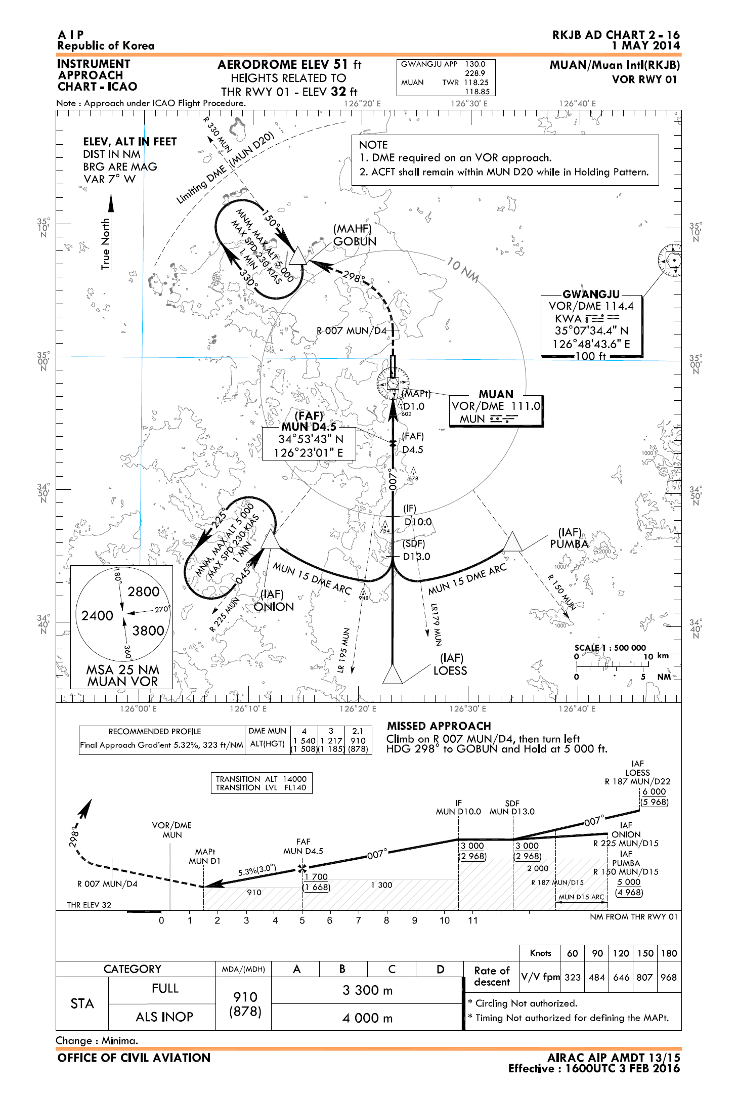 먼저 무안공항(RKJB) RWY01 VOR Approach Chart를 보자.