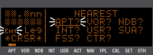 NEAREST 기능은 카테고리별 대상을 가장 가까운 순서대로 목록화 시켜 보여준다. 따라서 이 기능을 이용하기 위해서는 원하는 NAVAID 혹은 위치가 속해있는 카테고리를 알아야 한다.