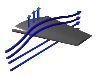 그 말은, 속도 변화에 따른 운동 에너지의 변화량 역시 커진다는 말인데요, 따라서 압력의 변화 역시 커지게 됩니다(베르누이의 법칙). 이렇게 대기의 밀도가 증가하면 속도차이에 따른 압력차이가 더욱 커지기 때문에 양력은 증가하게 됩니다.