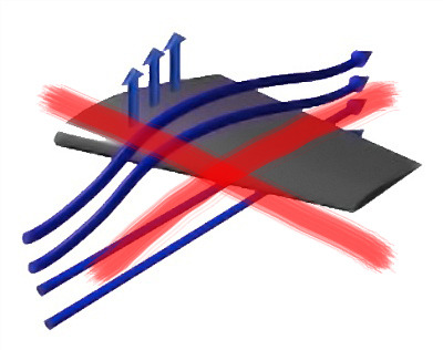 그 다음으로 생각해 볼 수 있는 대책은 날개 끝단에 장애물을 설치하여 날개 아랫면에서 넘어오는 공기흐름을 차단하는 방법 입니다.