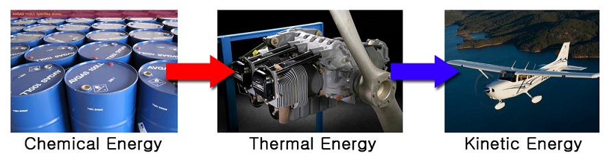 화학에너지인 연료 역시 엔진에서 열에너지로 변화하는 과정을 거쳐 운동에너지로 전환 될 수 있습니다.