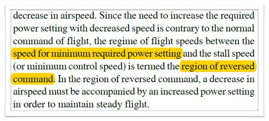 한편, 파워 요구량 곡선에서 아래 그림과 같이 최대체공속도 이하의 구간을 'Region of reversed command'라고 하는데요,