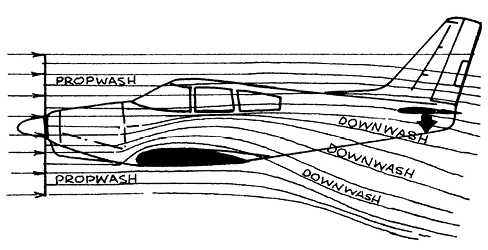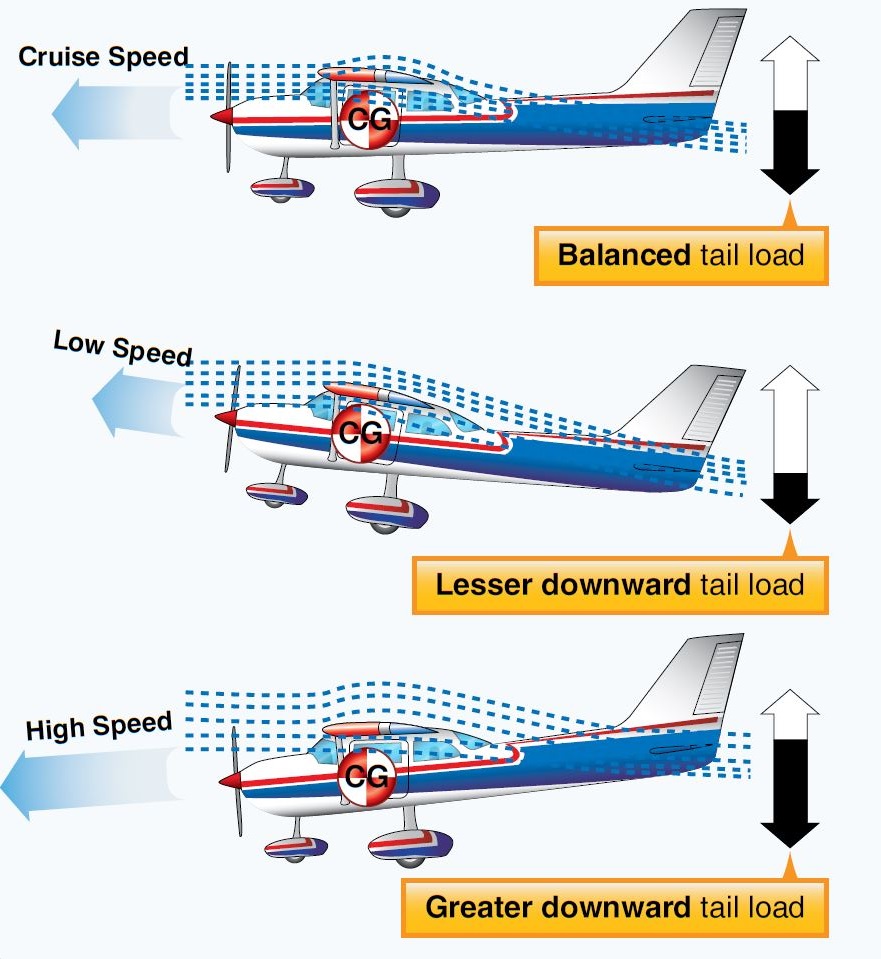 - 'Even though the horizontal stabilizer may be level when the aircraft is in level flight, there is a downwash of air from the wings. This downwash strikes the top of the stabilizer and produces a downward pressure'. 'The faster the aircraft is flying, the greater this downwash and the greater the downward force on the horizontal stabilizer (except T-tails)'.(PHAK p5-16) [본문으로]