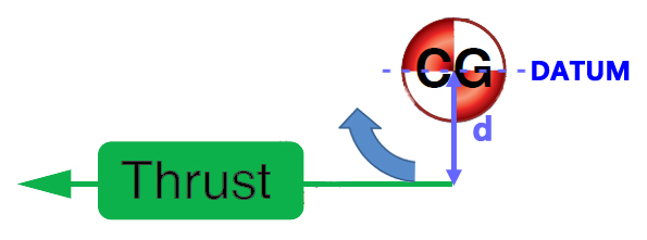추력선의 위치가 CG에서 벗어나게(Off set) 되면 CG를 중심으로 회전하는 모멘트가 생기게 됩니다.