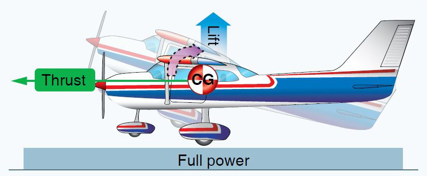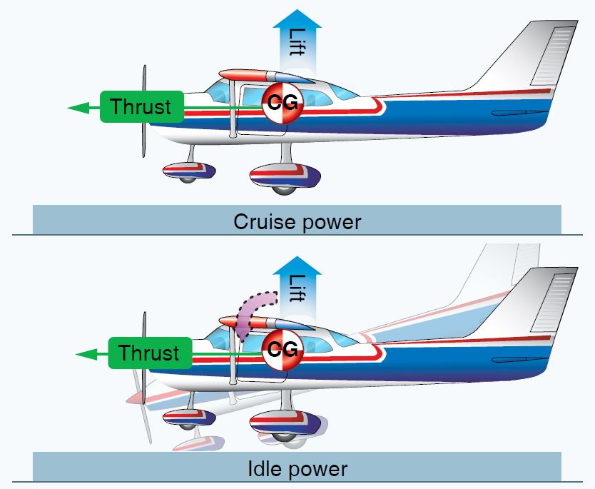 파워가 증가하게 되면 Tail down force를 강화시키게 되고 이로인해 비행기의 모멘트 평형이 깨지며 기수는 올라가게 됩니다.5