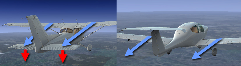 물론 이와같이 Down wash를 이용하는 경우 수평안정판이 날개보다 위에 위치한 T-tail의 형태를 가진 비행기에는 해당하지 않을 것입니다.