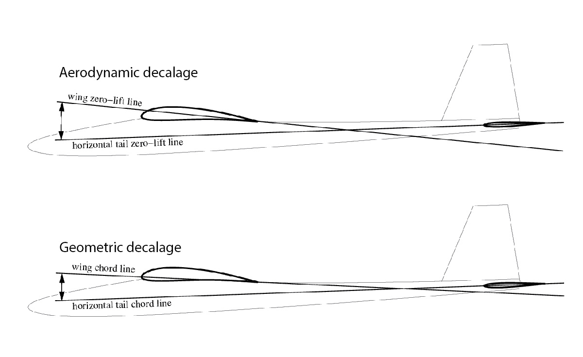 - Decalage angle can also refer to the difference in angle of the chord line of the wing and the chord line of the horizontal stabilizer. This is different from the angle of incidence, which refers to the angle of the wing chord to the longitudinal axis of the fuselage, without reference to the horizontal stabilizer.(https://en.wikipedia.org/wiki/Decalage) [본문으로]