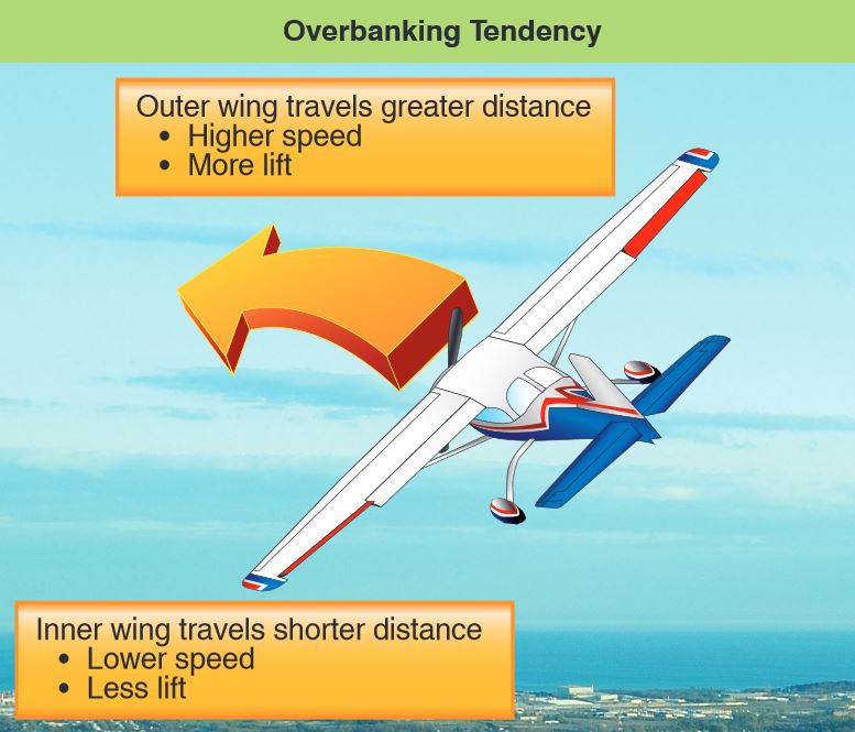 그렇게 날개가 기울어진 채로 회복하지 못하고 계속해서 선회를 하게되면 안쪽 날개와 바깥쪽 날개의 속도차가 생기고, 이로 인하여 상대적으로 먼 거리를 가게되는 바깥쪽 날개에 더 많은 양력이 생겨 서서히 비행기가 전복하게 되는, 소위 Overbanking tendency가 나타나게 됩니다.