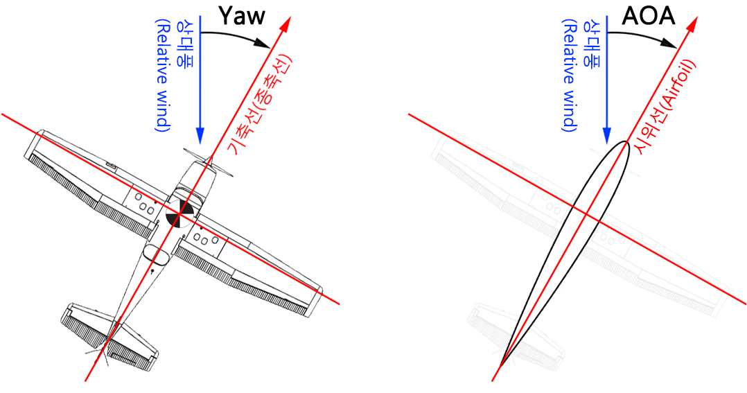 앞서 비행기는 일반적으로 상대풍을 추종하는 특성인 '방향안정성'을 가지고 있기 때문에 날개를 기울이게(bank) 되면 상대풍을 비스듬하게 받는 사이드슬립 보다는 상대풍을 정면으로 받는 '선회'를 하게 되는 경향이 있다고 하였습니다.