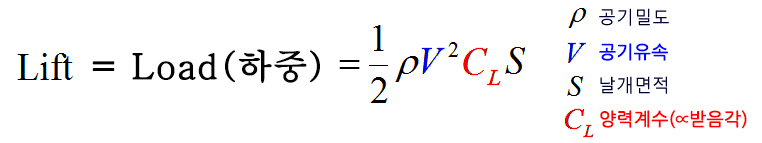 대기 상태가 일정하고 날개 형태가 일정할 때, 양력(Lift)은 '속도'와 '받음각', 이 두가지 요소에 큰 영향을 받습니다.