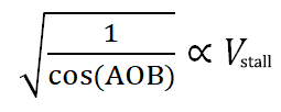 여기서 가속실속에서도 하중계수의 크기(=양력의 크기)를 알고 있으면, 일반적인 비가속 실속과 마찬가지로 속도와 받음각이 양력에서 차지하는 비율관계를 따져서 실속받음각의 크기를 실속속도로 간접적으로 나타낼 수 있는데요,