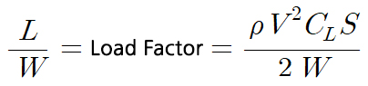 먼저 위 양력공식의 양변을 비행기의 중량으로 나누게 되면 하중계수에 관한 식으로 바꿀 수 있습니다.