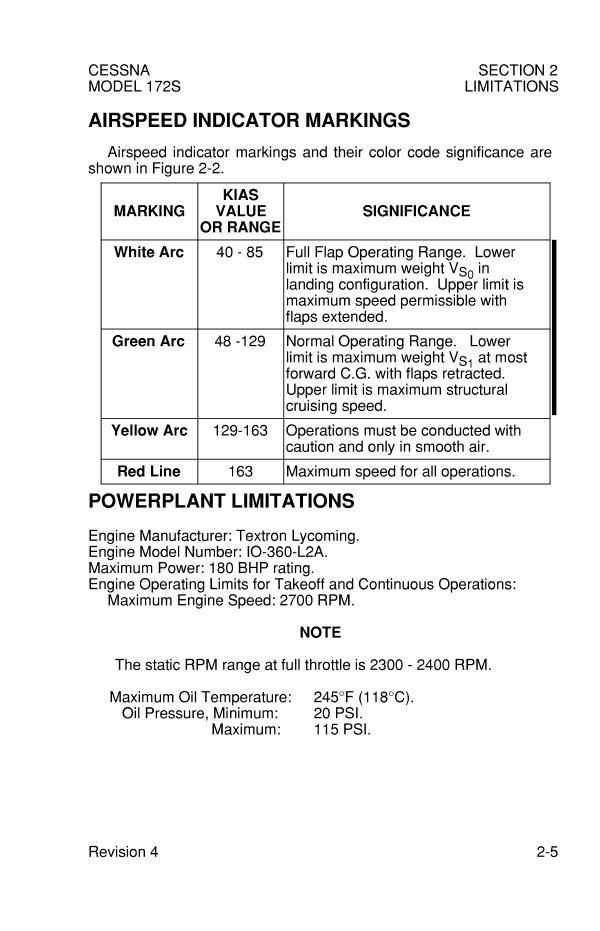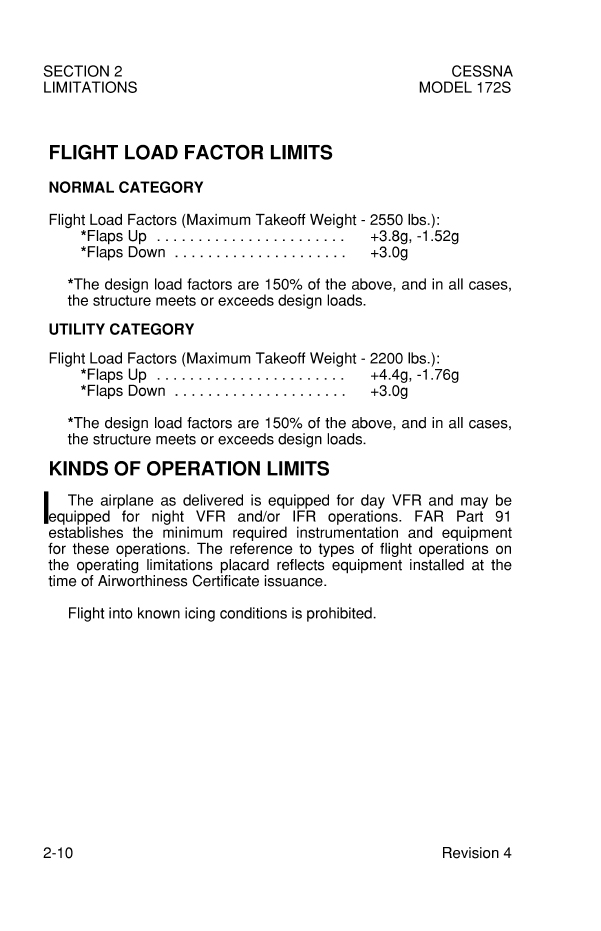 2. C172S의 운용한계 확인