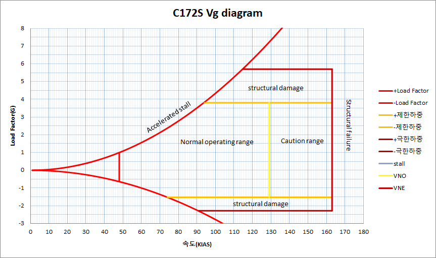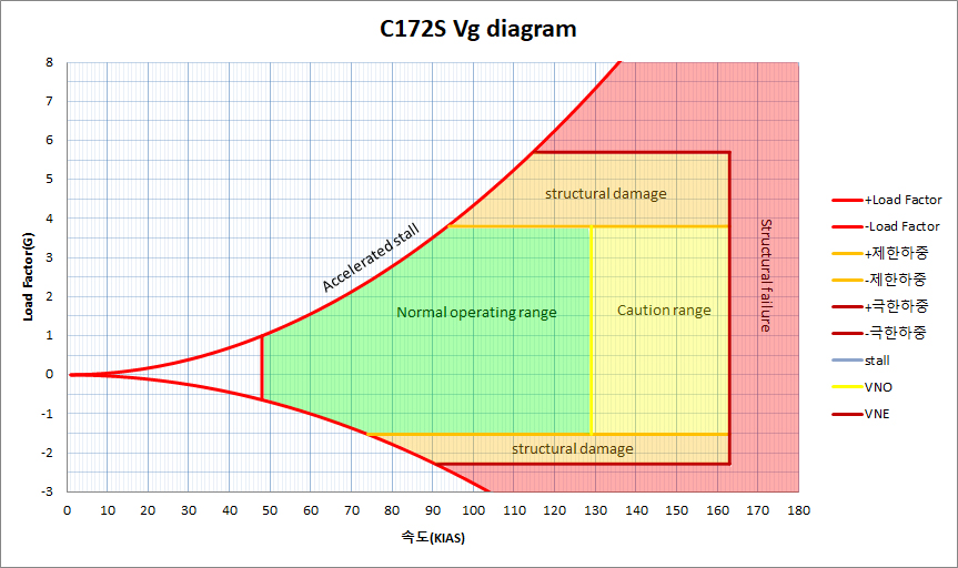 우리는 비행이론시간에 Vg 다이어그램을 공부하지만, 특히 소형 항공기를 타는 경우, 막상 Vg 다이어그램을 POH나 AFM에서 찾아보기는 어렵다. 하지만 왠지 Vg 다이어그램이 있으면 그 비행기의 운용한계를 쉽게 알 수 있고, 다른 사람에게도 그 비행기의 특성을 설명하기 용이 할 것 같아서 하나 만들어 두고는 싶다.