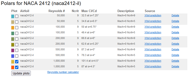 인터넷에 "Airfoil Tools" 라는 사이트가 있는데 여기서 NACA 2412를 검색하면 해당 에어포일의 특성을 알 수 있다. 여기서 우리가 찾아야할 정보는 받음각(Angle of atteck: α)과 양력계수(Cl)의 최대최소 값의 절대값 비 이다. 문제는 레이놀즈 수를 골라야하는데, 실제대기는 동점성계수가 매우작고, 비행기가 빨리 움직이기 때문에 C172S 제원으로 대충 계산해보면 2백만이 넘어간다.