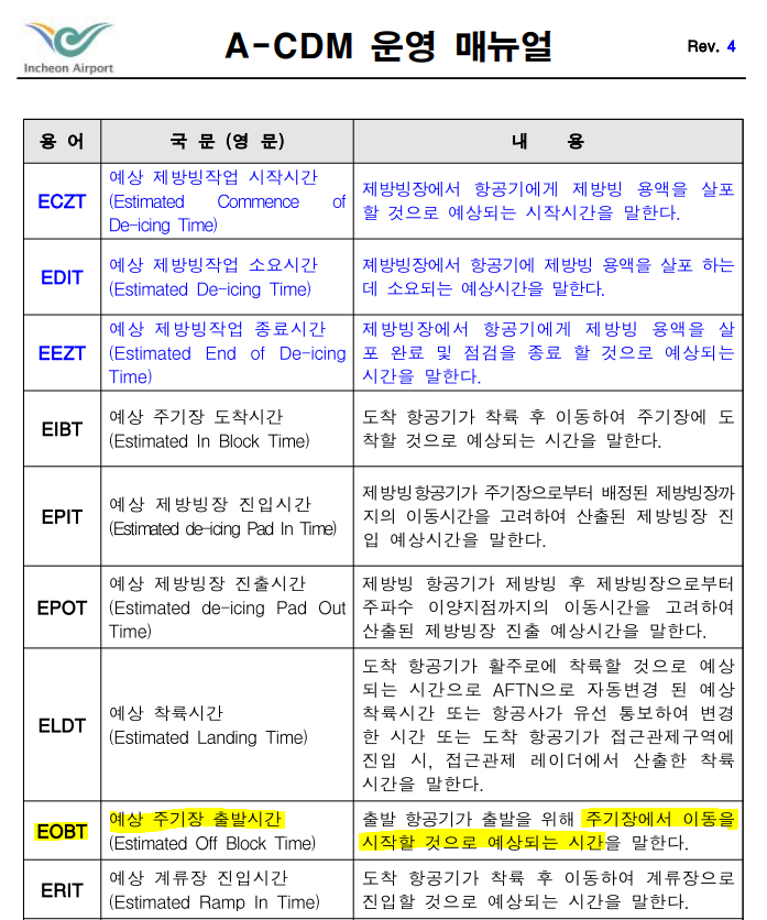비행계획서의 출발 예정 시간, EOBT(Estimated Off-Block Time)